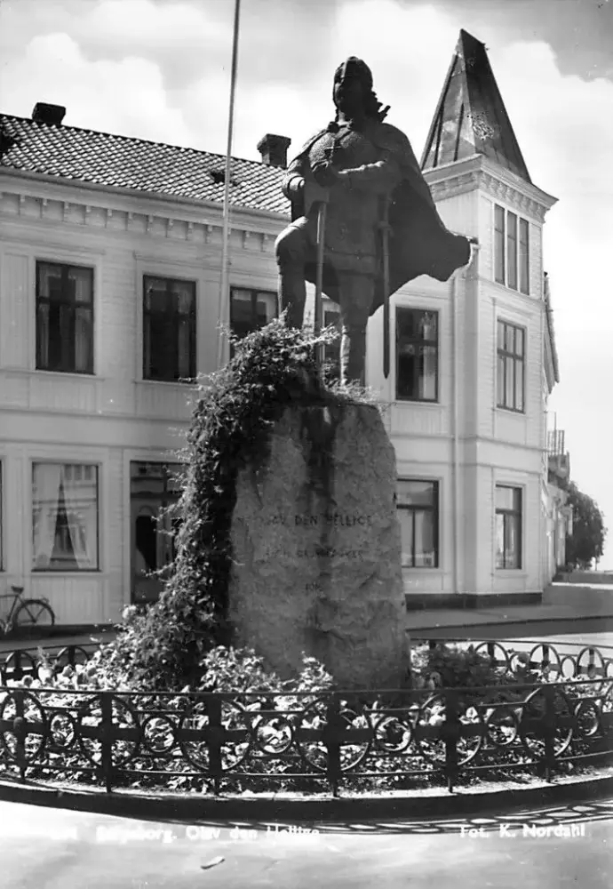 Nordhal, K. (1950) Olav den hellige på Lilletorvet [Foto] Sarpsborg kommunes fotosamling. DigitaltMuseum.