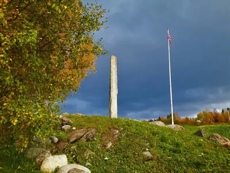 Bautasteinen ved Olskjelda ble reist og avduket Olsokdagen 29. juli 1954.